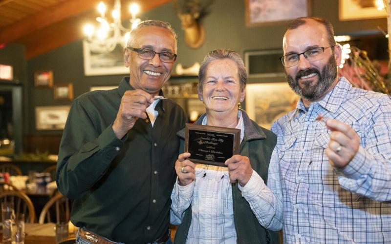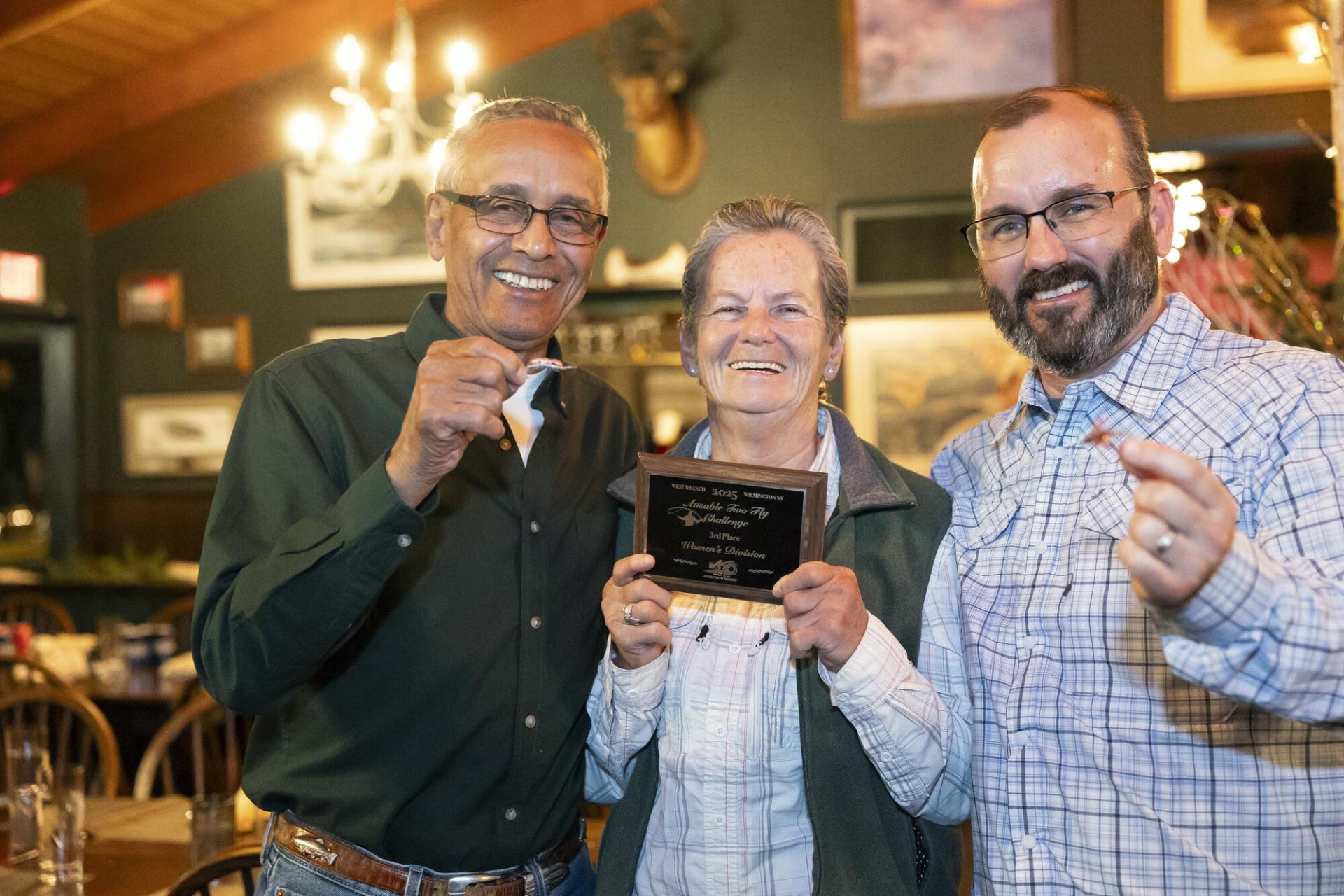 Rules for the catch-and-release tournament are simple: anglers are allowed to bring two barbless hook flies of any combination or patterns. Once the flies are lost or unusable, he or she is out. Anglers must fish with a partner, and each must record the total number of fish caught, the length of each fish, and the cumulative number of inches. Only fish handled by the angler and successfully released will count as caught fish. The winner is determined by the highest cumulative length of each fish caught.