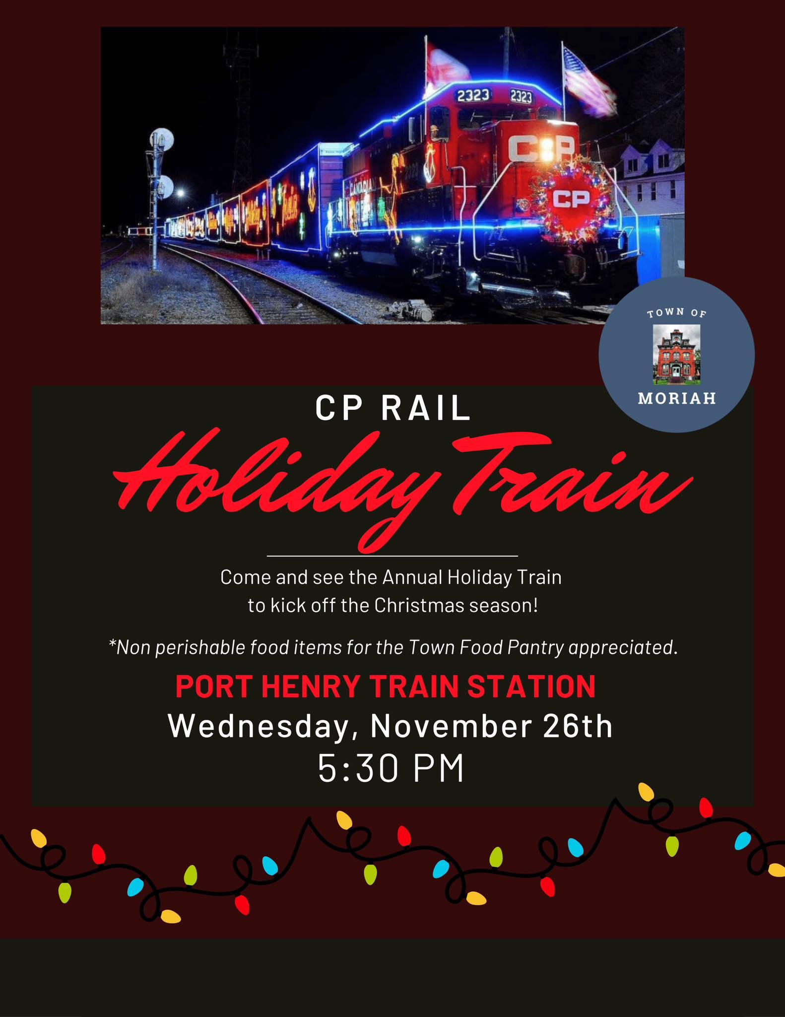 Get ready for a festive spectacle as the Holiday Train pulls into the Amtrak Station in Port Henry at 5:30 -6:15 p.m. Join us in celebrating the 27th year of this heartwarming tradition that brings holiday joy to communities across North America this winter.