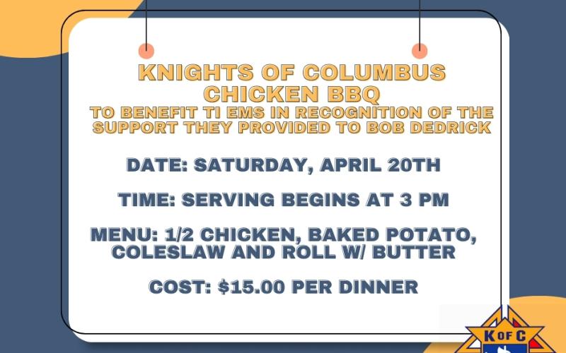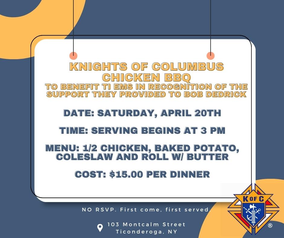 Located at Ticonderoga Knights of Columbus, 103 Montcalm Street in Downtown Ticonderoga