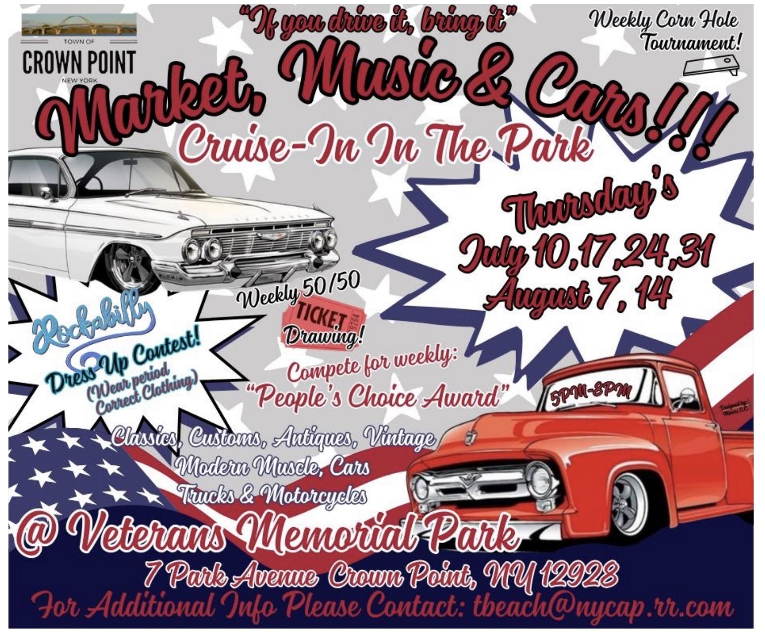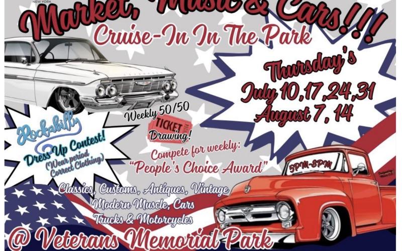 From 5 p.m. to 6 p.m., guests will be able to purchase fresh produce and other crafts and products from local vendors, with a concert featuring different singing performers, and duos every week featured from 6 p.m. to 8 p.m. Czech's Food Wagon will be on site for each market and Classic, Customs, Antique and Vintage Autos are invited to Cruise-In.