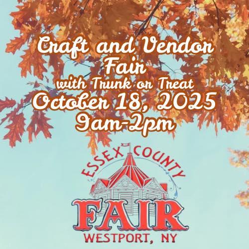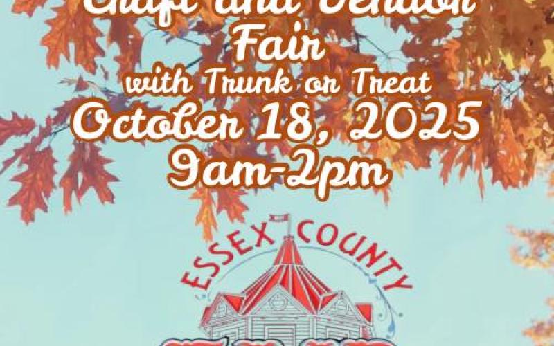 A Fall Craft and Vendor Fair with Trunk or Treat will be held Saturday, October 18, 2025 starting at 9am at the Essex County Fairgrounds.