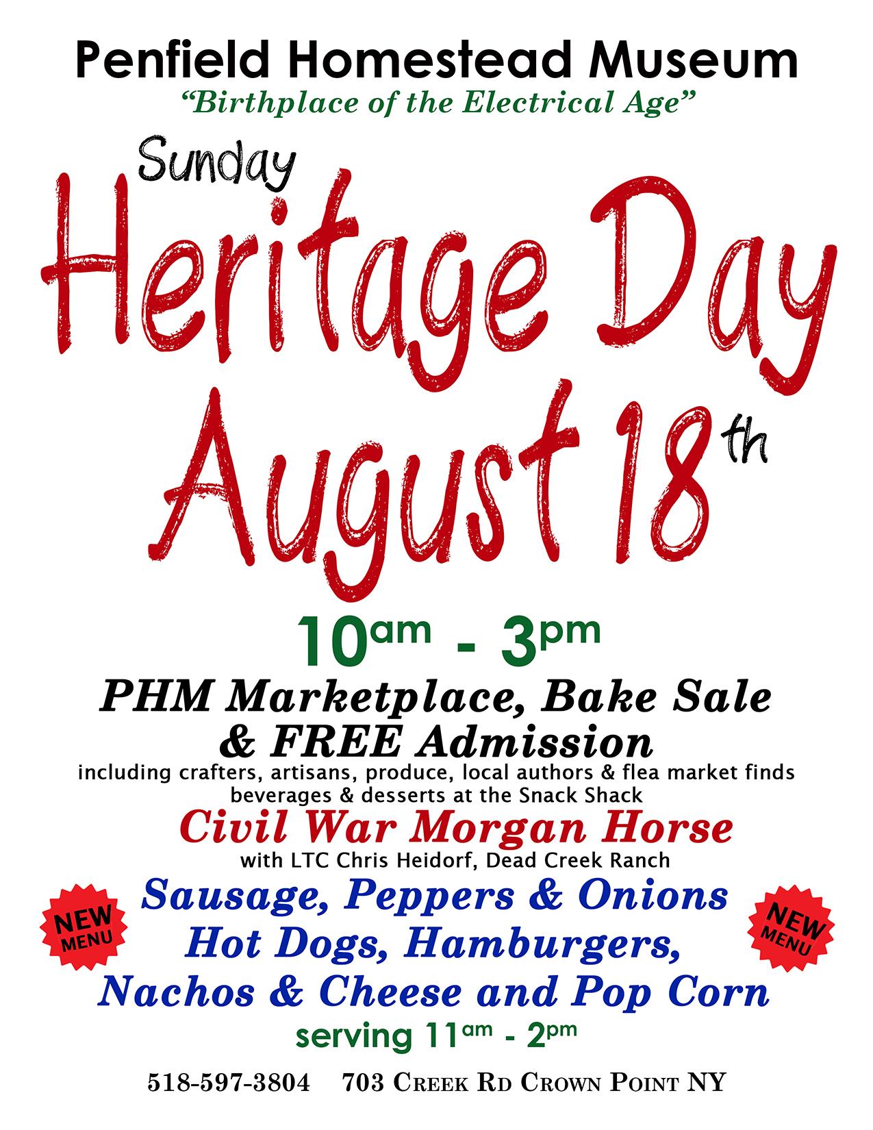 Penfield Homestead Museum will host its Heritage Day on Sunday, August 18, from 10:00 am until 3:00 pm.