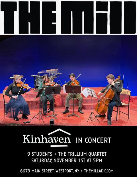 Kinhaven students and Trillium String Quartet will perform on Saturday, November 1st at 5pm at The Mill There is no charge for the event, but reservations are recommended for the concert and can be made at themilladk.com.