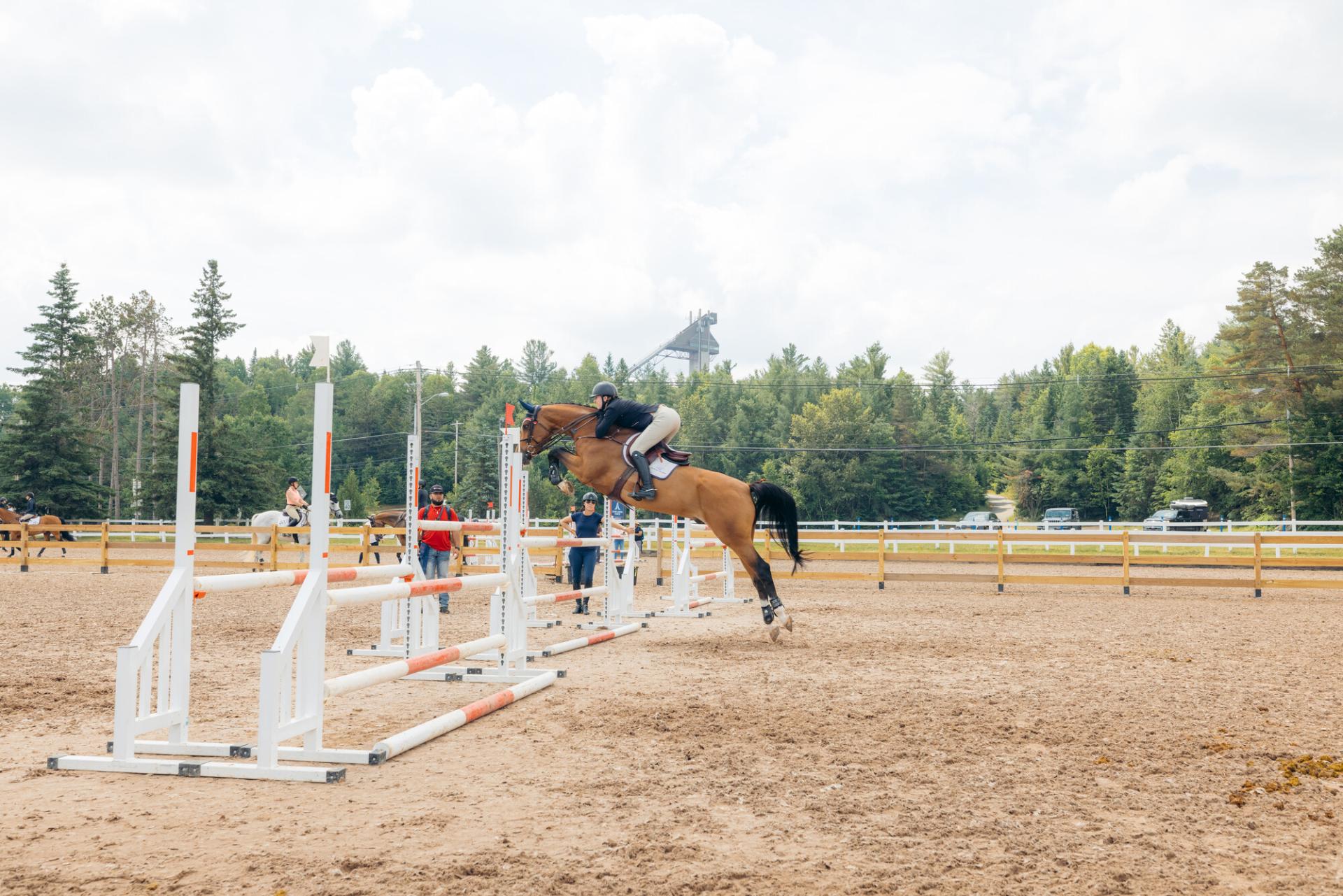 Show jumping or 'stadium jumping' is an English riding event. It is a relatively new sport, originating sometime in the mid-18th century. The Lake Placid Horse Shows feature hunter jumper and show jumping in both adult and junior divisions. Show jumping is all about getting through the course in the fastest time with the fewest faults (knockdowns, refusing a jump, going off course), while hunter jumping (no actual hunting invovled) is judged based on a combination of factors, including skill and riding style.