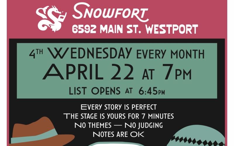Hosts Loree Burns and Mac MacDevitt are looking forward to welcoming all our storytelling friends to SpeakEazy Open Mic's new home at Snowfort Books in Westport on the FOURTH WEDNESDAY every month at 7pm. We are collaborating with owners Adam and Amy Robinson in their warm, friendly bookstore and community space in the old Adams Hardware building. Come and join us, check out the books and settle in with your friends and neighbors for a night of sharing or just listening to true, personal stories.