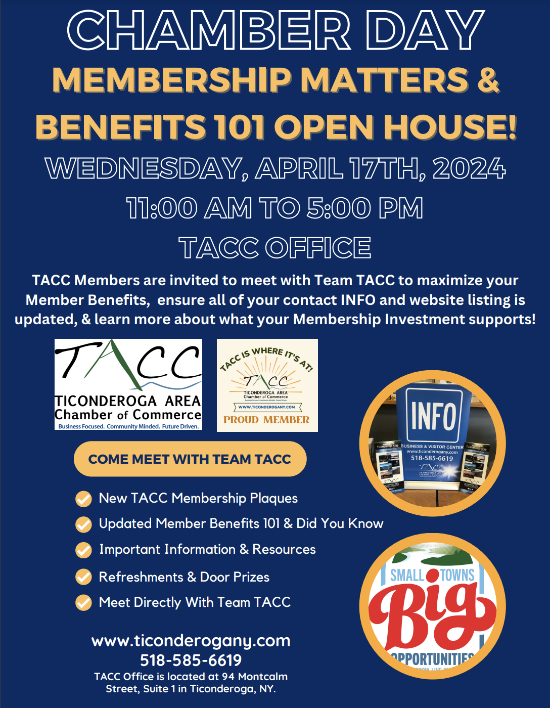 Chamber Day 2024 will be an opportunity for TACC Members to learn more about maximizing their member benefits, as well as an opportunity to meet one on one with the Chamber Team. An Open House will take place throughout the day with coffee, refreshments, door prizes, and much more! In addition, TACC will be giving out special 2024 Member stickers and plaques.