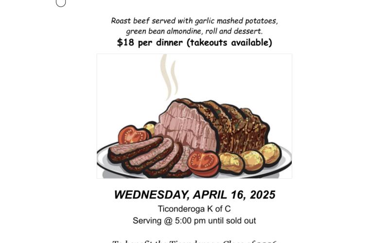 Join the Class of 2026 for a Roast Beef Dinner Fundraiser at the Ticonderoga Knights of Columbus
