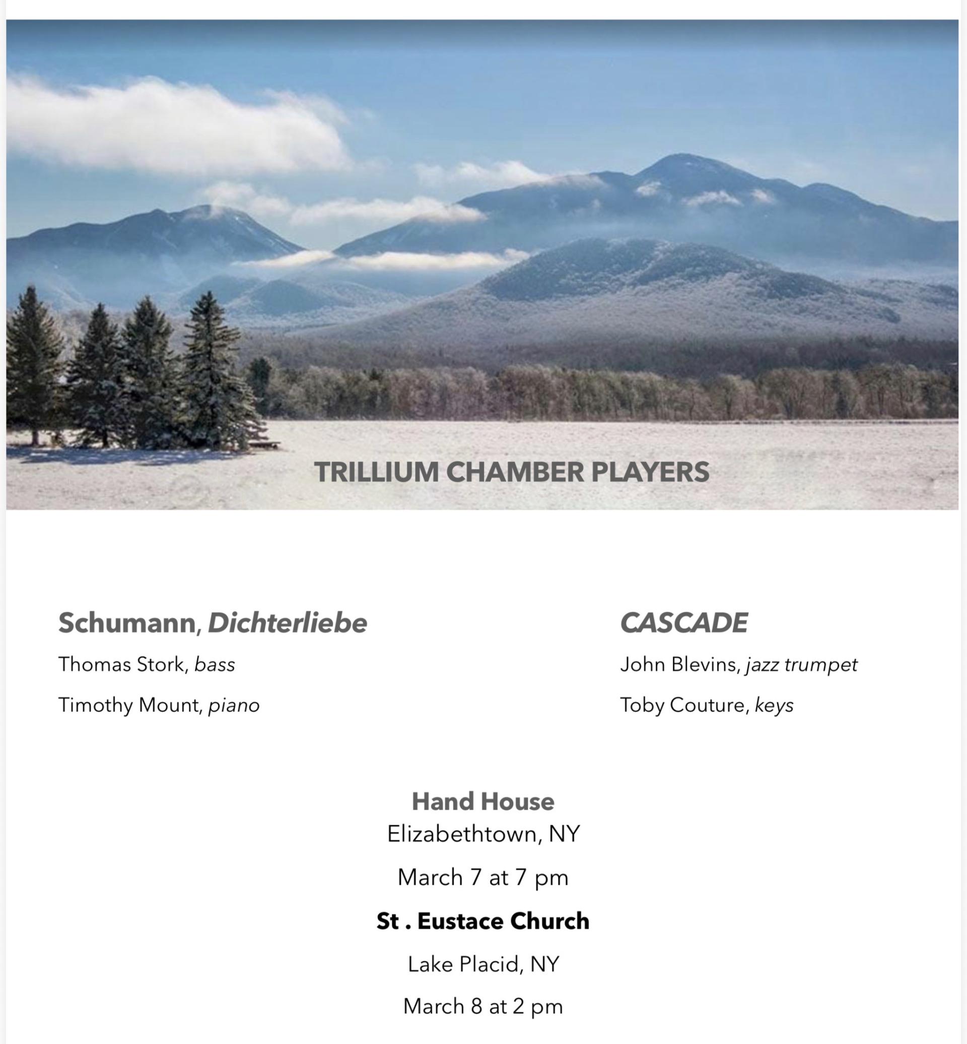 Schumann’s profound song cycle, Dichterliebe, on the first half and avant garde jazz on the 2nd half featuring Gramm Award winning trumpet player, John Blevins.
