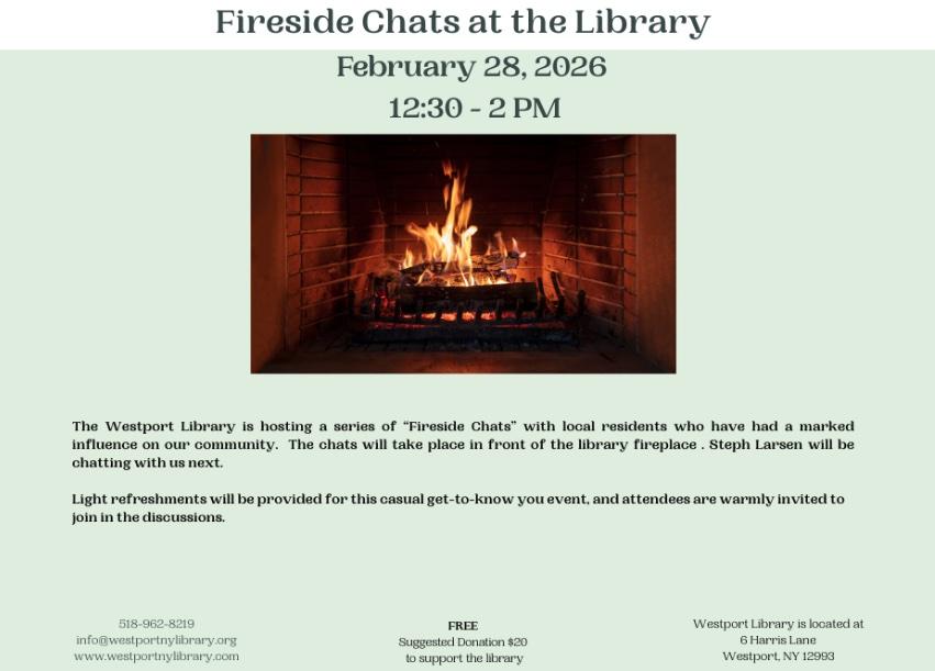 Saturday February 28 12:30-2P Fireside Chat with Steph Larsen.