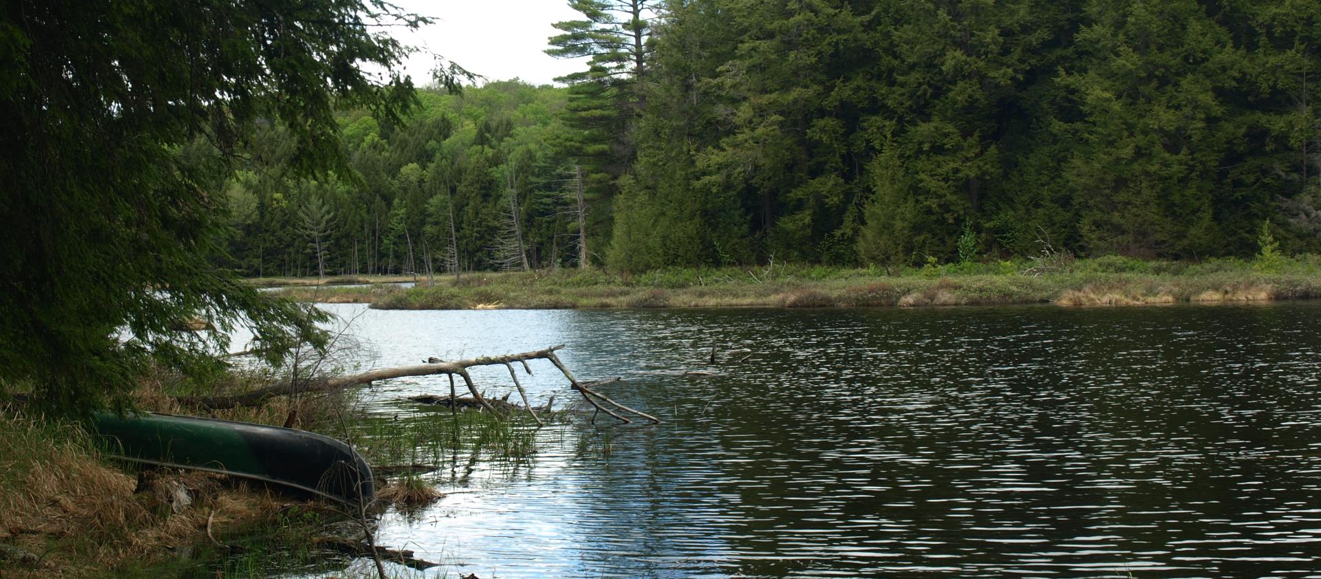An easy trail leads back to the beautiful Goose Pond in the Pharaoh Lake Wilderness Area. At 66-acres, Goose Pond isn't large, but it's deep waters offer anglers a chance to catch some fish.