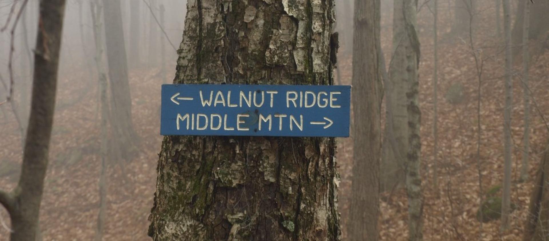 This is the shorter of the two loops and is a bit more rugged than would be expected. The trail is marked in yellow. At about 0.2 miles in, the yellow trail breaks off to the left and continues an easy climb and quickly comes to an unmarked intersection with the Blue Trail up Walnut Ridge. From here the trail takes a sharp right and starts climbing steadily over rough footing at times. The trail is well marked but not used heavily so you will need to look ahead for the next marker and be aware of sharp turns to stay on track. There are nice views along the climb of Walnut Ridge from open rock areas. The actual summit of Bear Knob has what they call seasonal views. From the summit you will descend, at times fairly steeply, back to the blue trail about 0.4 miles from the parking lot.