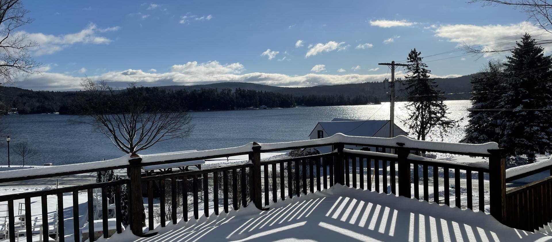 Winter brings ice fishing, ice skating on the lake or in town where even borrowed skates are no charge, snowy walks on the majestic frozen lake, skiing, or snowmobiling. The town golf course has the perfect beginner's slope for novice skiers or sledding.