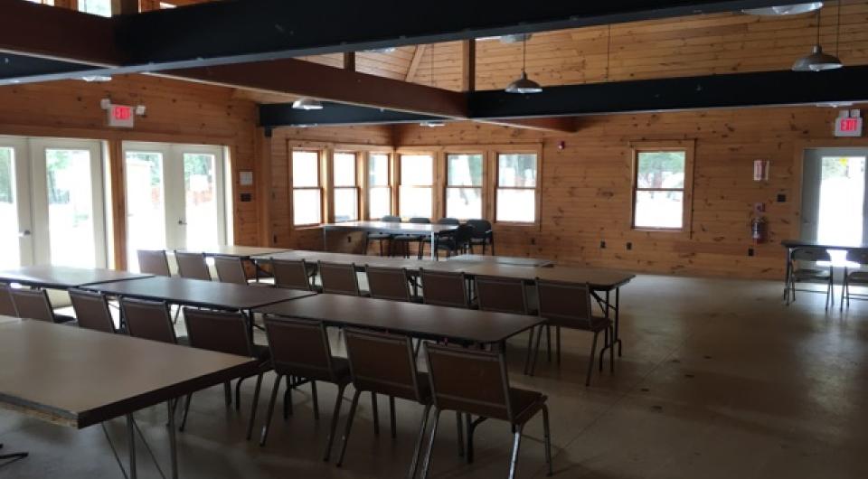 The Lodge is an exceptional place for your event. It features a custom Adirondack style exterior and rustic post and beam open ceiling and interior.