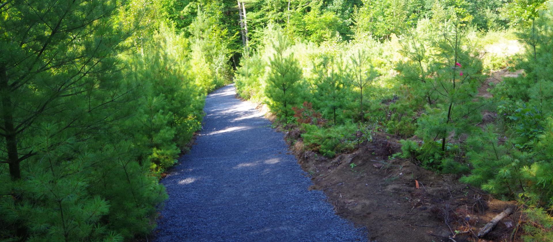 The trailhead to the Upland Forest Trail network is behind the old school at the end of Library Street. The Upland and River trails will eventually be connected.