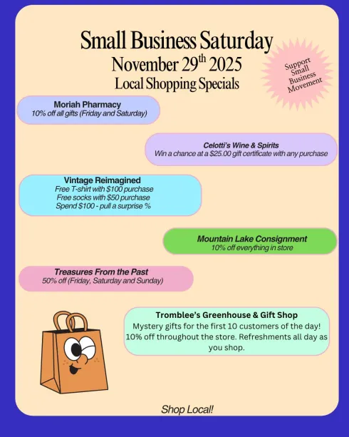 Moriah Chamber of Commerce Announces Local Shopping Specials for Small Business Saturday