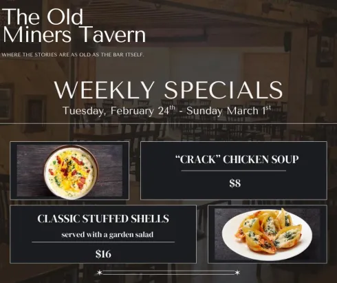 The Old Miners Tavern is serving up comforting favorites in this week’s specials, available Tuesday, February 24 through Sunday, March 1.