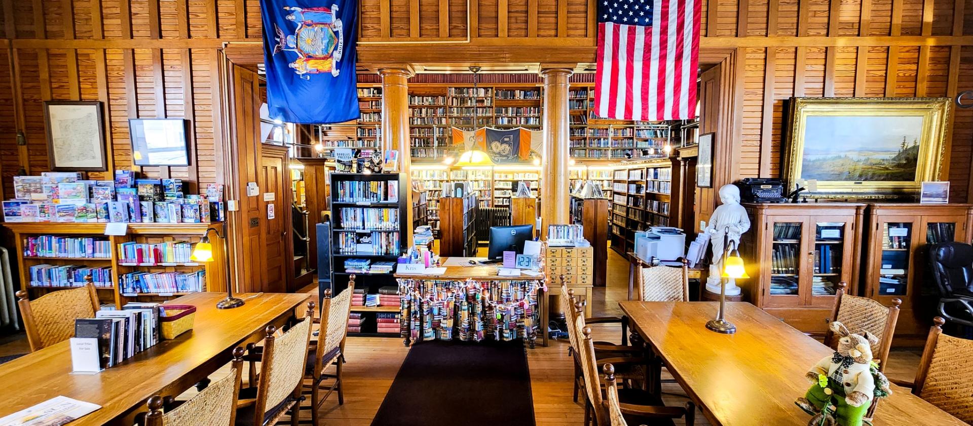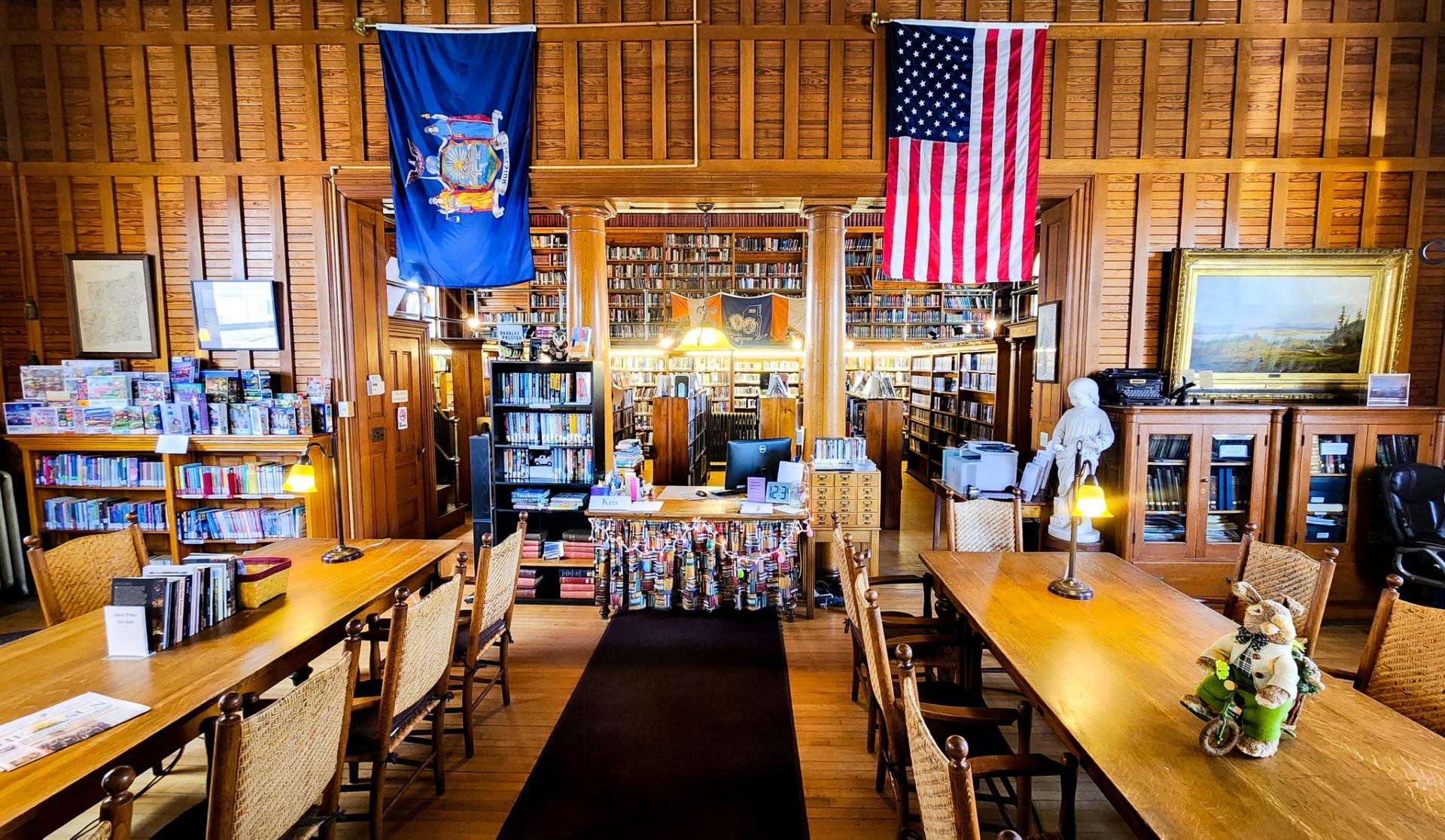 The library was placed on the National Register of Historical Places in 1995. The library's varnished oak interior remains intact. In addition to books, the library displays historic maps, photos and paintings.