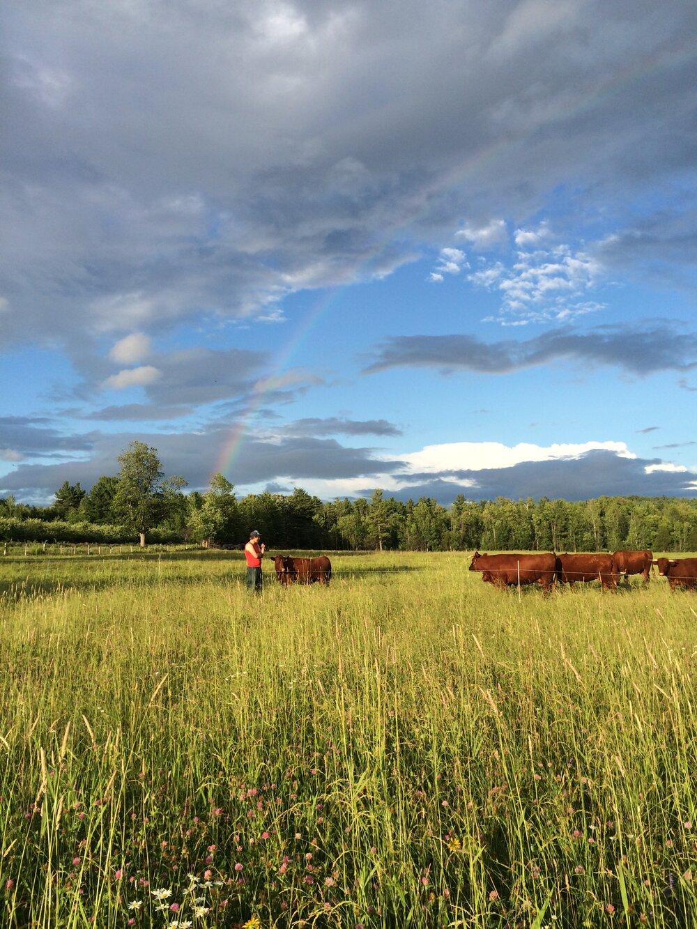 We are a diversified livestock operation in the Champlain Valley, rotationally grazing Devon Cattle, Katahdin Sheep, heritage Pigs, Turkeys, and Chickens. Our beef and sheep are 100% grass-fed, and our pigs, chickens & turkeys forage on pasture and receive rations of non-gmo grains.