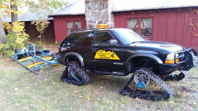 The Adirondack Trail Riders make us of some pretty awesome-looking trail grooming equipment, a Chevy Blazer on tracks, to ensure a good base for your riding experience. Many hours are spent in this machine prepping trails for everyone’s enjoyment.