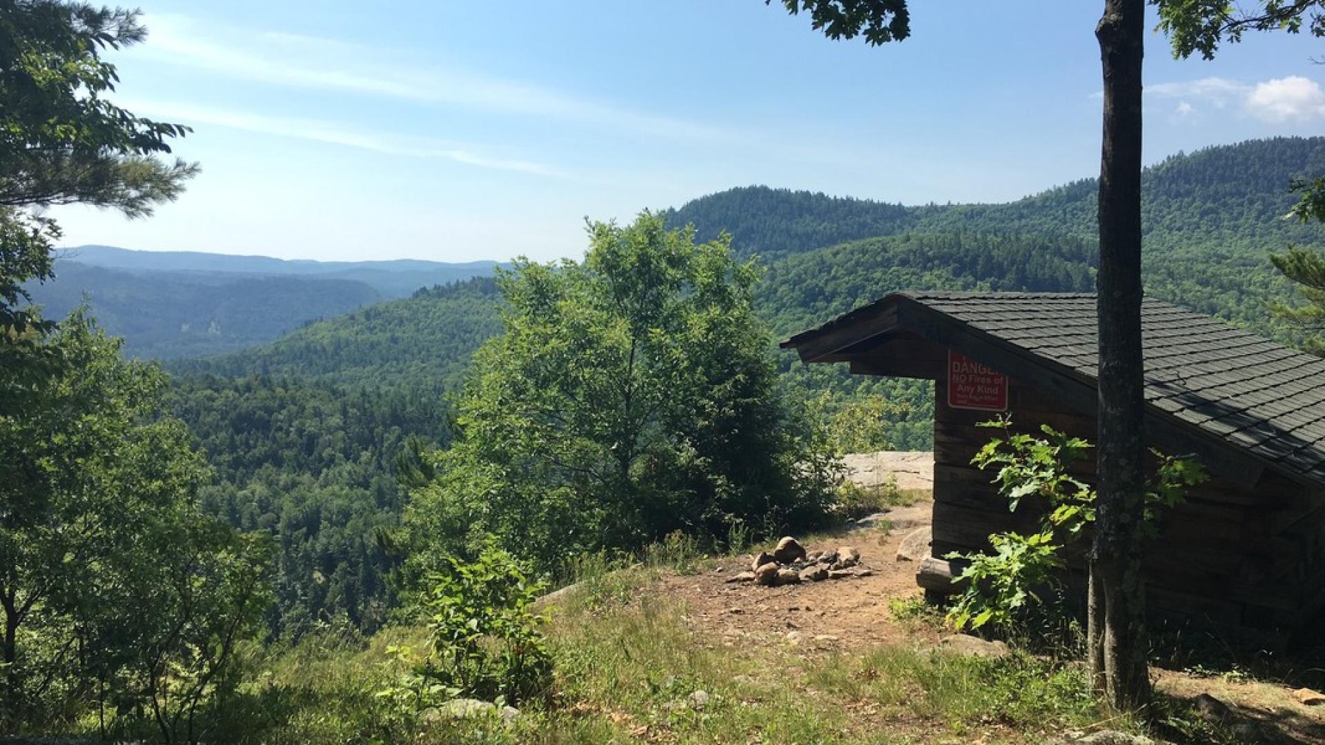 You’ll have to take the trail map with you to make sure you take the correct turns, but this is a short hike to a lean-to with a terrific view of some of the town of Elizabethtown and the Giant Mountain Wilderness Area.